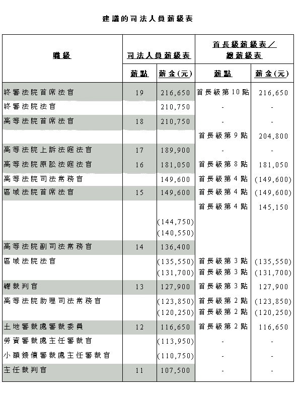 的建议,修订特委裁判官职系的薪級表。该局并支持确立附有指定薪点的新司法人
