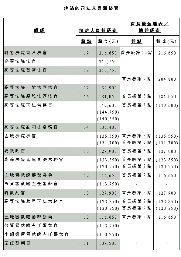 示)均一并視作同一個薪点。司法机构建议在编定司法人员薪級表的薪点時,沿用上