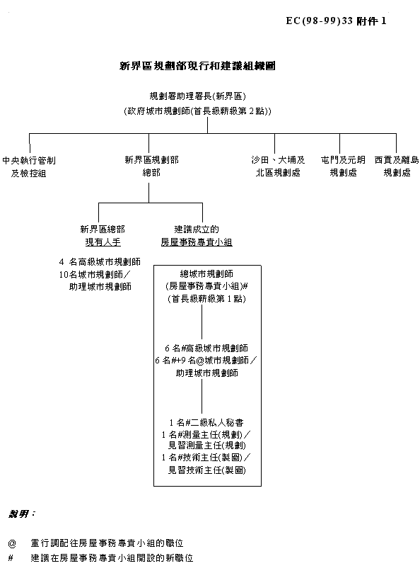 7.规划署新界区规划部总部的现行和建议组织图载于