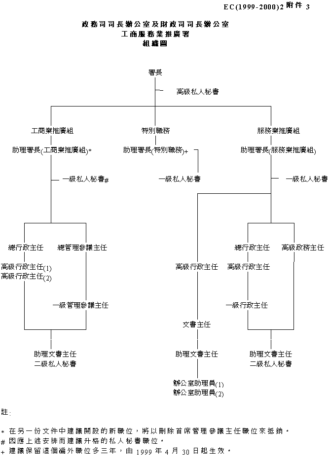 1998年10月30日在工商服务业推广署开設一個首长級丙級政务官编外职位(职衔定为助