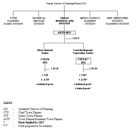 10.To provide professional and secretarial support to the UR Division, we will retain the existing 19 posts of two Senior Town Planners, five Town Planners, six technical staff, four clerical and two secretarial staff currently funded by LDC.