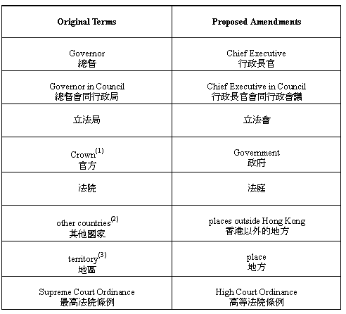 6. The Bill proposes, among other things, the substitution of "other countries" by "places outside Hong Kong" in section 18(1)(h) of the Professional Accountants Ordinance (Cap. 50) and the substitution of "territory" by "place" in the context of "country or territory outside Hong Kong" in the Occupational Retirement Schemes Ordinance (Cap. 426). In relation to such proposed amendments, we have written to the Administration asking for clarification on the following matters :