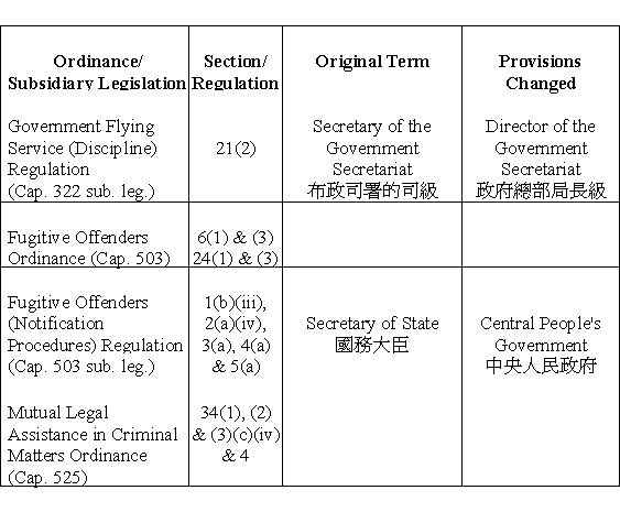 List of Ordinances affected by the Adaptation of Laws (No. 22) Bill 1999