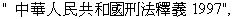 - As from 1 July 1997, a new constitutional order was in place in the form of the BL, which was passed by the National People's Congress (NPC) of the PRC. The only sensible way to interpret the Chinese criminal laws was to see how they interfaced with the working concept of "One Country, Two Systems" and the provisions of the BL. On this basis, it was appropriate for the Administration to adopt a purposive approach in interpreting "PRC citizens" and "outside the territory" in Article 7 of the CCC in that, in relation to crimes committed in the SAR, the former referred to "Chinese nationals who were residents of the Mainland" and the latter referred to "outside the jurisdiction of the Mainland".