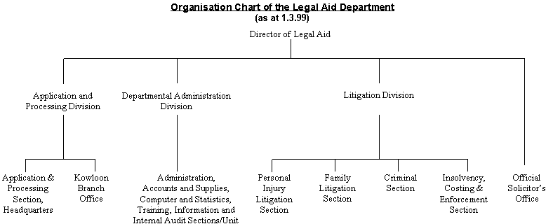 - Supervising the work of 9 Professional Officers(3 Senior Legal Aid Counsel and 6 Legal Aid Counsel), 2 Senior Law Clerk I, 5 Senior Law Clerks II, 25 Law Clerks and 42 general grades staff of the General Teams, Information and Appointments Unit, One Stop Service Unit, Office Administration and Typing Pool.