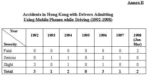 Annex B. The statistics may not be a true reflection of the size of the problem as no sane drivers involved in accidents would readily admit to the Police of being on mobile phone when the accidents occurred.